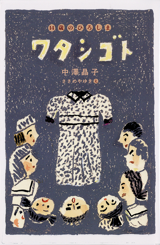 “Watashigoto” depicts the Hiroshima Memorial Museum’s collection of objects found after the atomic bombing in 1945. In this book of five short stories, junior high school students visit Hiroshima on a school trip. In one story, a boy tosses his lunch box on the kitchen floor, angry at his usually neglectful mother. Returning home later that day, he sees ants swarming all over the mess. At the museum, trudging along the dark, suffocating space, he draws a parallel to trying to flee his hateful home, when he notices a bomb-blackened lunch box in a showcase. It reminds him of his ant-covered lunch box and the conflict with his mother. In another story, a boy who is obsessed with stones conducts an experiment with some classmates where roof tiles are set on fire in imitation of the atomic blast. Through this experience, he realizes that not only stones but also human beings were burned by the bombing in 1945. The students come to feel the tragic loss of life in different ways, but in the process connect today’s world with wartime memories. [RN]